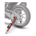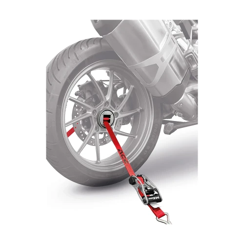 CapStrap leveres komplett med stropp og jekk, og er svært enkel å bruke. Stroppen er laget av høykvalitets ABS-materiale, som beskytter motorsykkelens lakk og aluminiumsramme mot riper, bulker og annen mulig skade. CapStrap er veldig enkel å montere, slik at du raskt kan feste den på plass. Stroppen er 135 cm lang og kan enkelt strammes.