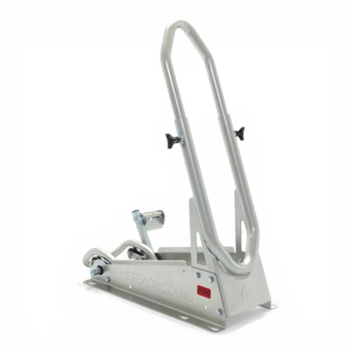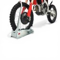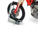 ACEBIKES SteadyStand Cross MC støtte har en smart klemanordning som vil hindre din motorsykkel fra å tippe eller flytte på seg, - sykkelens forhjul blir enkelt forankret til stativet. Dette gjør det unødvendig å komprimere gaffelen og skade pakningene!