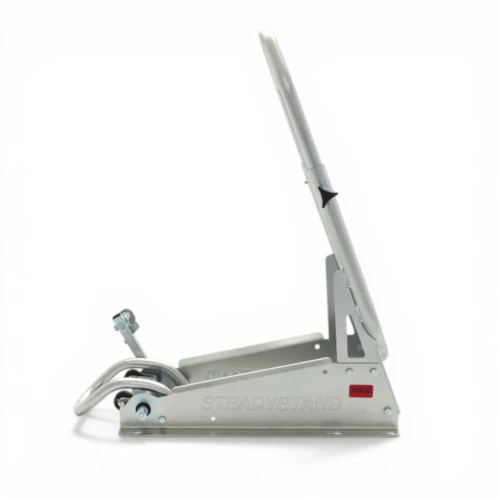 Bruker du SteadyStand Cross , trenger du kun ACEBIKES tyrefix, tiedowns eller jekkestropper bak på sykkelen som tilleggssikring. Egen fotpedal installeres på begge sider av støtten bak og sikrer låsing av hjulet ved bruk. SteadyStand Cross er egnet for 18 til 21 tommers hjul og dekk størrelser fra 90 opp til 120 mm.
