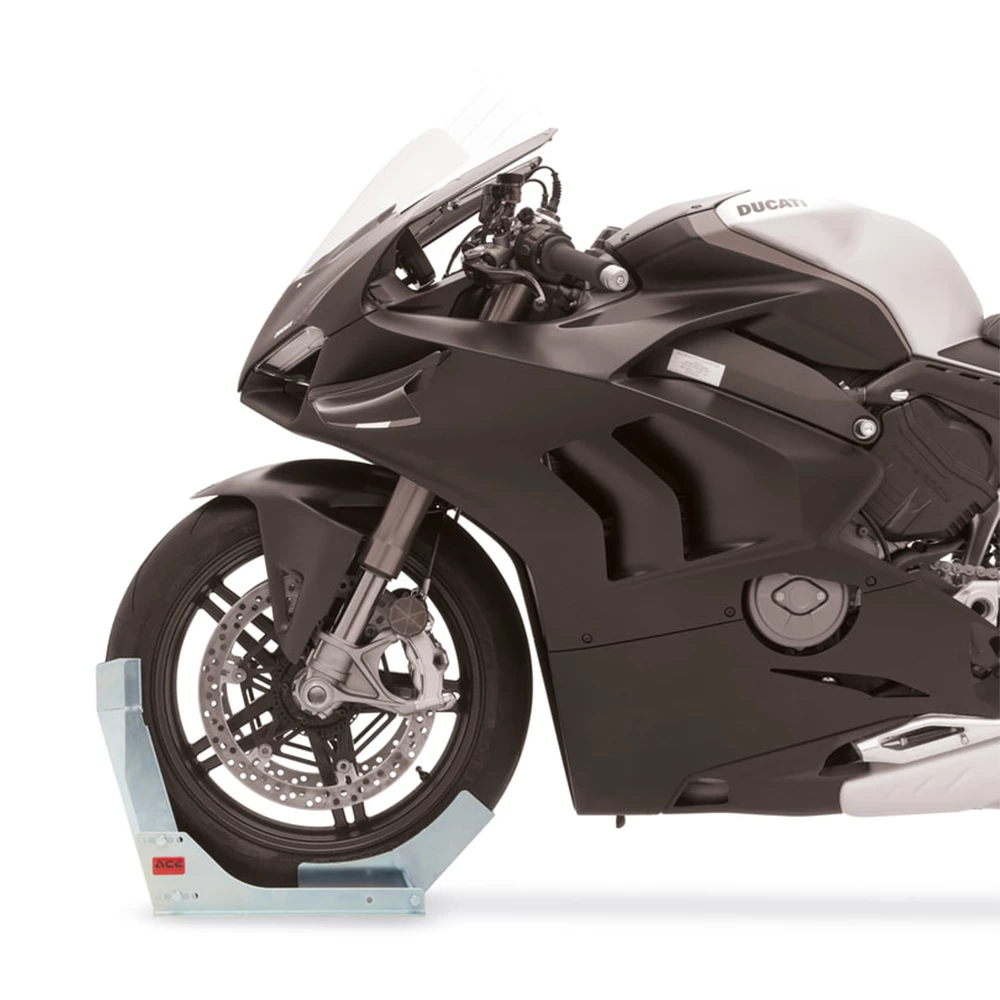 Vekten holder motorsykkelen godt festet. Det eneste som gjenstår er å feste stropper på motorsykkelen for total sikkerhet. SteadyStand Fixed er justerbar for ulike hjulstørrelser, og passer for dekk fra 10 til 19 tommer med en dekkbredde på 90 mm opp til 130 mm.