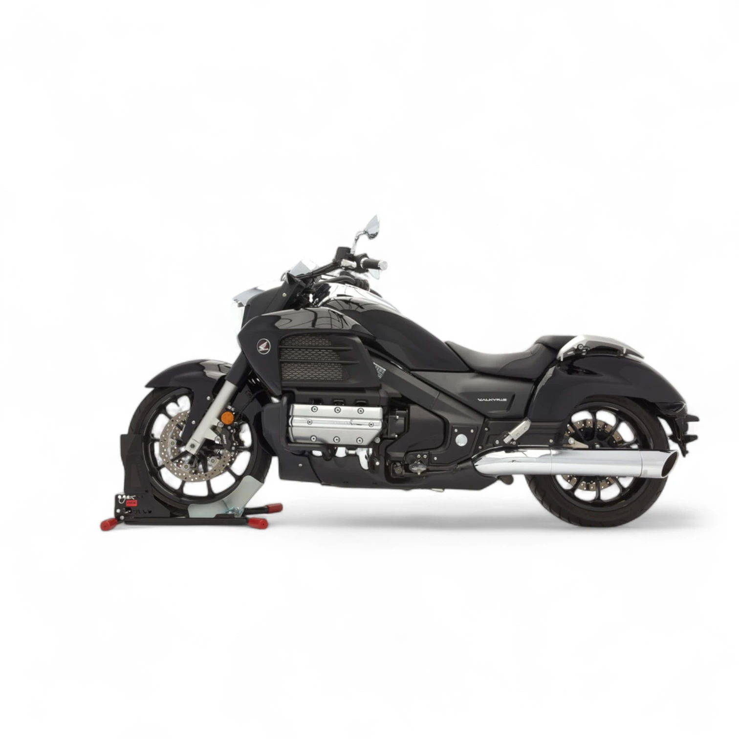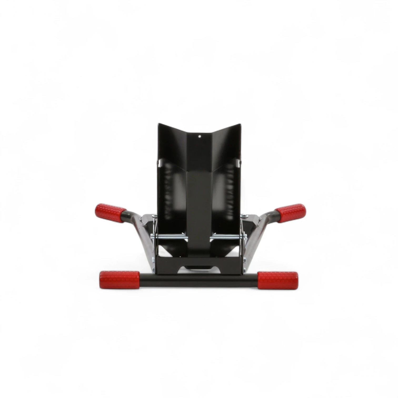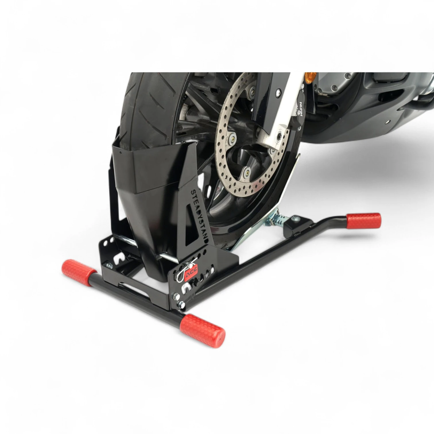 Med Acebikes SteadyStand Multi setter du trygt fra deg din motorsykkel på få sekunder. Støtten er fullt justerbar (for dekkbredde og diameter) og passer derfor nesten alle typer motorsyklers fremre eller bakre dekk, uten bruk av verktøy .