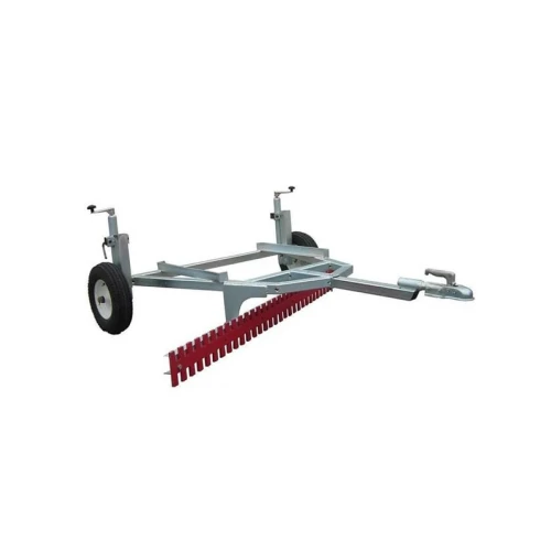 Arbeidsbredden på skrapen er 180 cm, og høyden justeres ved hjelp av de medfølgende støttehjulene.