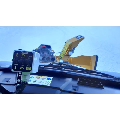 Enheten er utstyrt med egen fjernkontroll med følgende styringsmuligheter: rotasjon på vinkel på utkastertuten, rotasjon på utkastertuten og avslåing.