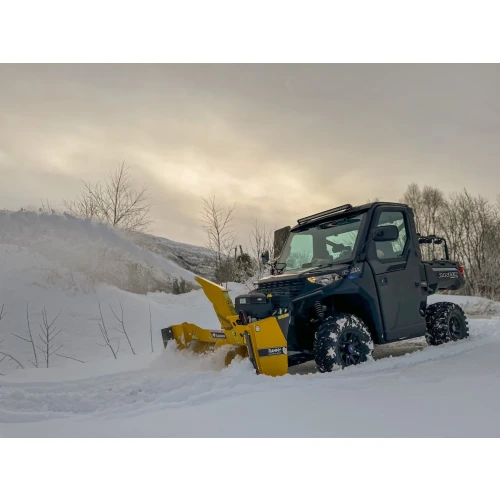 Rammy 155 ATV snøfreser er kompakt og lett. Snøfreseren er kvikk og effektiv. Den løftes med ATV vinsjen, som gjør at den kan enkelt brukes selv i en mindre hage.