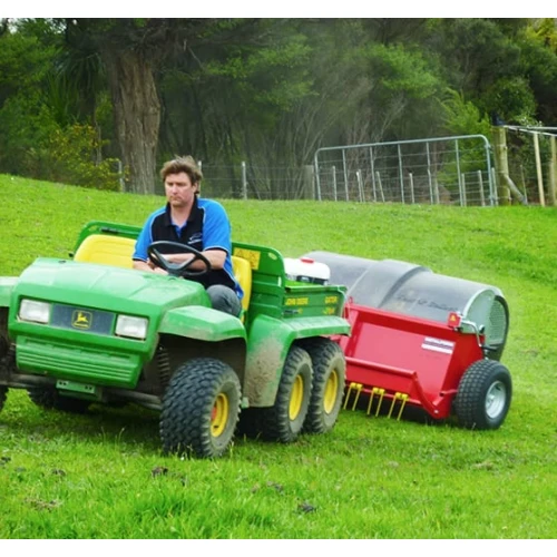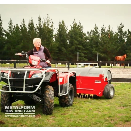 På grunn av børstens konstante feiebevegelse fjerner den også dødt gress fra beitet ditt i motsetning til de klassiske vakuum-maskinene. Fjerning av dødt gress fremmer det levende gressets vekst og lar beite å få mer nødvendig næringsstoff og sollys for å overleve. Våre Tow and Collect-maskiner er lette å kople på og trekke med seg med et standard tilhengerfeste på din ATV, 4-hjuling, sekshjuling eller minitraktor. Bare fest den til slepekroken og du er klar til å samle opp møkka. Tow and Collect oppsamlerne fjerner dessuten dødt gress, noe som forbedrer kvaliteten på gresset ditt.