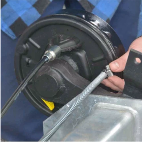 KNOTT bremsespylesystem for båthengere brukes til å fjerne saltinntak, noe som kan forårsake langvarig korrosjon og svikt i bremsekomponentene. Ved hjelp av slangekontakten kan ferskvann skylle bremsene innvendig, umiddelbart etter at hengeren er brukt og fjerne saltet.