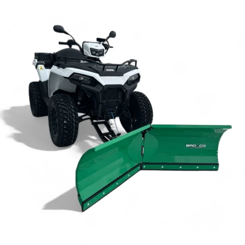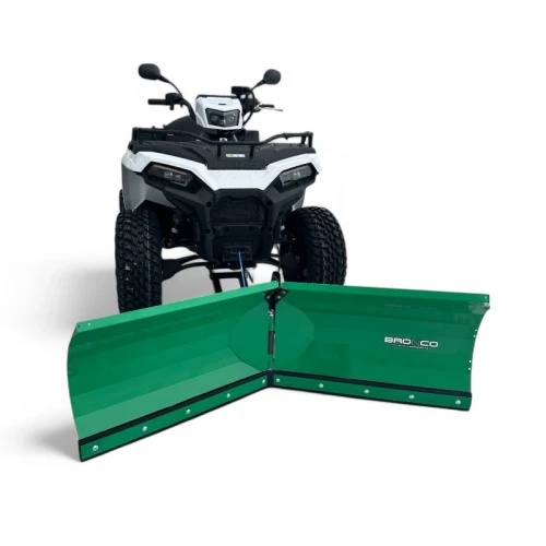 Enkel og robust svenskprodusert snøplog for ATV / UTV som tåler tøffe forhold! Fjærende plogskjær med torsjonselement og gummiskjær som standard gjør det mulig å brøyte stille og skånsomt på steinheller, brostein eller andre sensitive underlag. Justerbare glidesko er inkludert som standard. Bladene vinkles ved hjelp av to kraftige IP65-klassifiserte 12V elektriske aktuatorer hentet fra gruveindustrien. Hver aktuator flytter omtrent 225 kilo i bevegelse og holder posisjonen under en belastning på 1,1 tonn. Utstyrt med kobling som utløses ved overbelastning og i endeposisjonene.