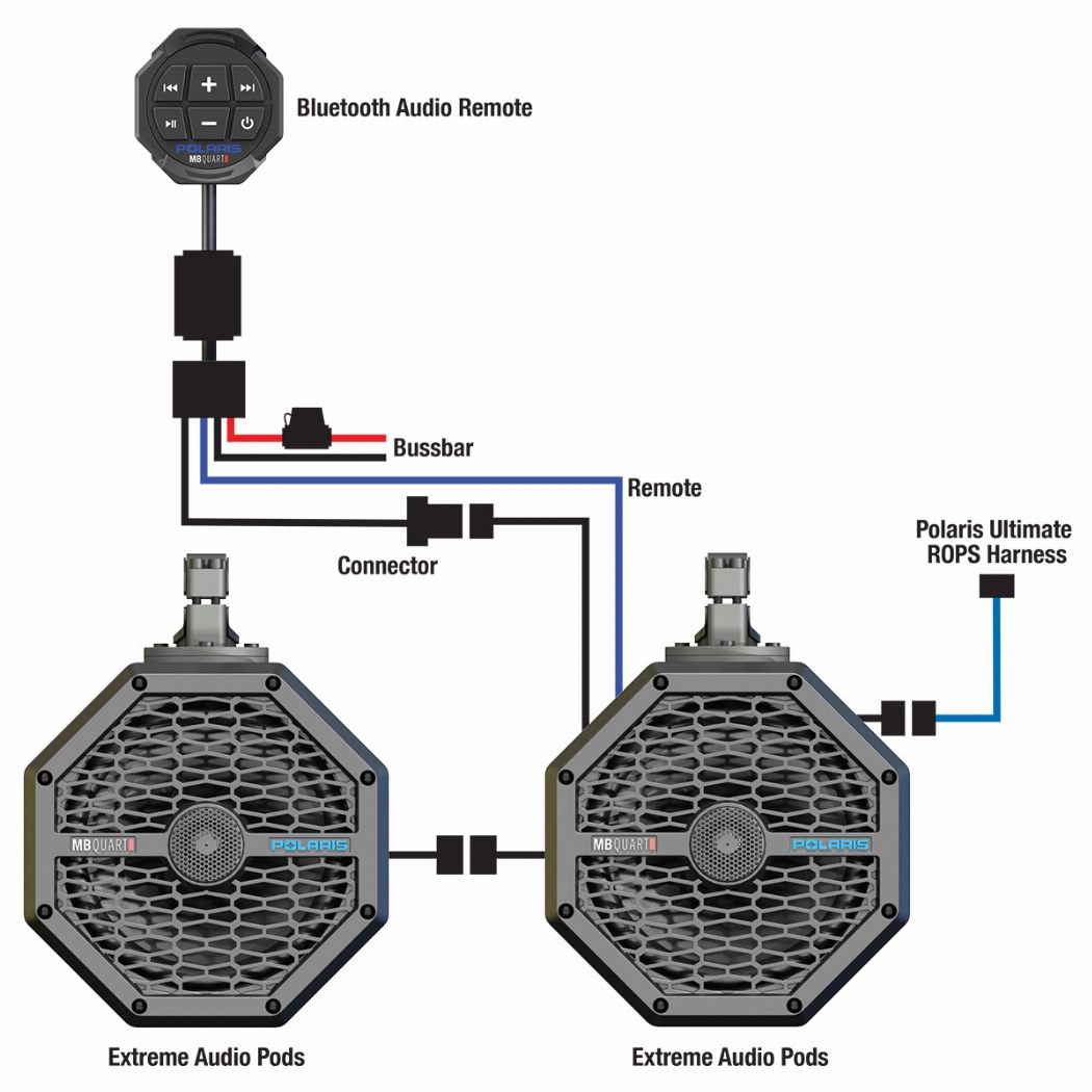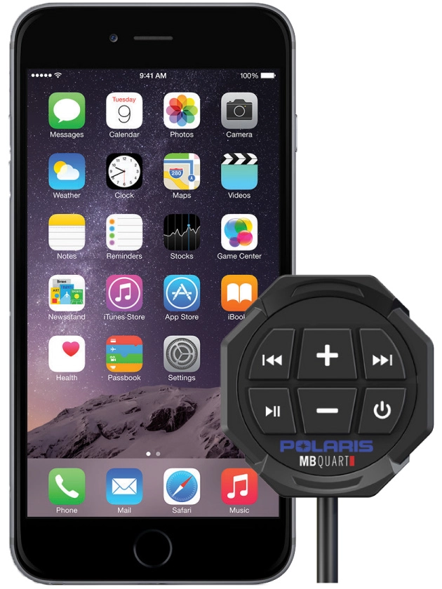 En high-end, marine sertifisert, vanntett, kablet bluetooth preamp fjernkontroll for off-road kjøretøyer! Med MBQuart Bluetooth Connect ™ og Secure Simple Pairing ™. Enkel installasjon og genial til å kontrollere avspilling av musikk / Radio via en Bluetooth-aktivert enhet. Fantastisk tilbehør i oppsett med våre Polaris tilpassede MBQuart lydprodukter Soundbar 8, Soundbar 4 og Extreme Pod.