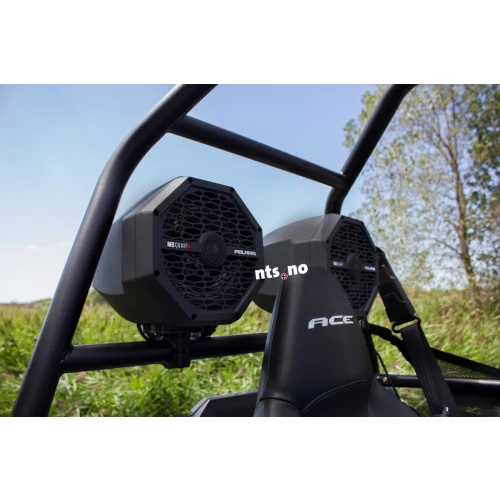 FASTMONTERT, SOLID OG FLEKSIBELT: Det innovative monteringssystemet for Extreme Audio Pods er solid og allsidig. Konstruert i støpt aluminium og roterbare fester. Dette systemet lar deg velge optimal vinkel og høyttalerposisjon. Extreme Audio Pods monteringssystem benytter også gummiisolasjonsbrakett og komponenter med beslag som er spesielt utviklet for å redusere vibrasjoner. DESIGNET AV POLARIS OG MB QUART: Terrengopplevelsen kan bli enda fetere akkompagnert av et formidabelt lydbilde! Ta med dine favorittsanger på eventyret, uansett hvor veien fører deg. Polaris produktutviklere har i samarbeid med MB Quarts lydteknikere og produktdesignere utviklet Extreme Audio Pods og lydplanker til RZR, Ranger og Ace. Resultatet er et sømløst lydsystem for Polaris ekstreme terrengkjøretøy. LIFE SHIELD STEMPEL: MB Quarts Life Shield ikon er et kvalitetsstempel; Vanntette, støvtette , snø sikre produkter bygget etter de høyeste standarder. Utenfor allfarvei er tross alt et tøft sted å jobbe; MB Quarts Life Shield produkter tåler off road bruk og andre utfordringer utover det vanlige.