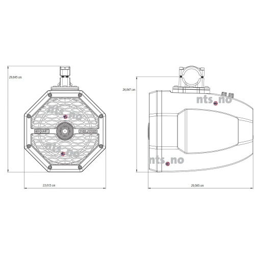 Dimensjoner: 28,09 cm lengde x 23 cm bredde x 23 cm pod.