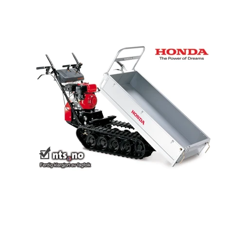Honda HP500 transportmaskin med belter er perfekte for flytting av store lass på små områder, over mykt underlag og i ulendt terreng! Maskinen er overraskende lette å manøvrere og tilnærmet sømløs i bruk med Hondas anerkjente hydrostatdrift. Det unike beltemønsteret gir utrolig trekkraft, selv opp trapper, men minimaliserer samtidig skade på underlaget, noe som er spesielt nyttig over plener og hager. Hvert belte styres individuelt med høyre og venstre hendel, for enklere manøvrering og kun 71cm svingradius. Modellene leveres med justerbart lasteplan.