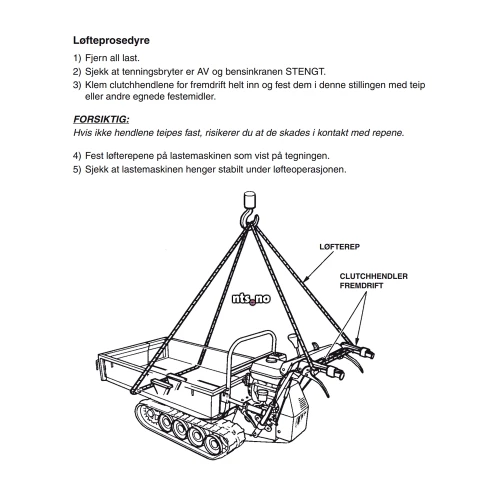 • Fremdriftshastighet F/R i m/s: Forover 1,2 / Bakover 1,0