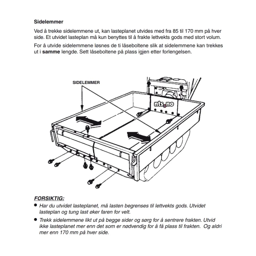 • Lastekassens bredde: Kan justeres(!) til 56, 73 eller 90 cm.