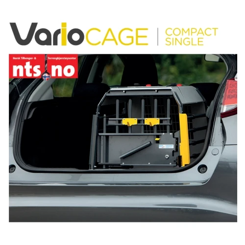 VarioCage hundebur er utviklet for den ansvarsbevisste kjæledyreier, og sjåfør, som er opptatt av sikkerhet for passasjerer og dyr. VarioCage komprimeres i en kollisjon langs bilens deformasjonssone, uten å splintres. VarioCage er dessuten utstyrt med nødutgang. - Redningspersonell vil se etter denne når de finner hund i bilbur v/ kollisjon eller ulykke for kjapt å få hunden ut. Kollisjonstest: VarioCage hundebur er dokumentert gjennom hundrevis av kollisjonstester og regnes blant de sikreste på markedet. Burene er svenskproduserte og konstruksjonen er kollisjonstestet på Sveriges Tekniska Forskningsinstitut. Fodelene er mange: Nødutgang. Enkel festing med stropper i bilens bagasjerom. Justerbart i dybden. Låsbart. Gassløftere i dørene. Medfølgende gummimatte. Oppbevaringsrom i dørene og ikke minst funksjonell og gjennomtenkt konstruksjon ut i fra et sikkerhetssynspunkt.