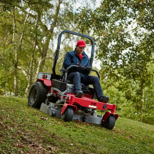 Med to kjørespaker som hver styrer separate hjulmotorer for muligheten til å svinge på stedet. Dette gjør klippingen betydelig raskere enn tradisjonelle traktorer, i tillegg til at den aldri etterlater uklippet gress. Bare skyv begge spakene forover for å kjøre, trekk tilbake for å reversere, og bruk dem hver for seg for å svinge.