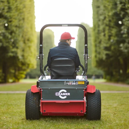 Kontroller hjulene med de to sensitive førerspakene som responderer på små bevegelser og gjør det enkelt å vende og styre, Å snu med Cramer Zero Turn er mye mer ergonomisk og bbrukervennlig sammenlignet med en tradisjonell sitteklipper med eller uten servostyring.