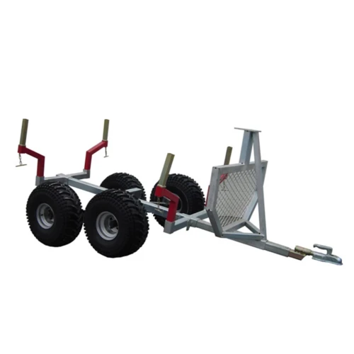 Praktisk tømmerhenger til ATV og UTV; Meget god fremkommelighet med pendelboggi. Tippbar arbeidsplattform for de litt større jobbene. Fire sidestøtter for tømmerlass.