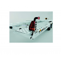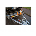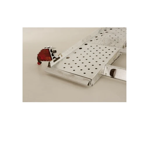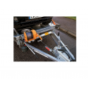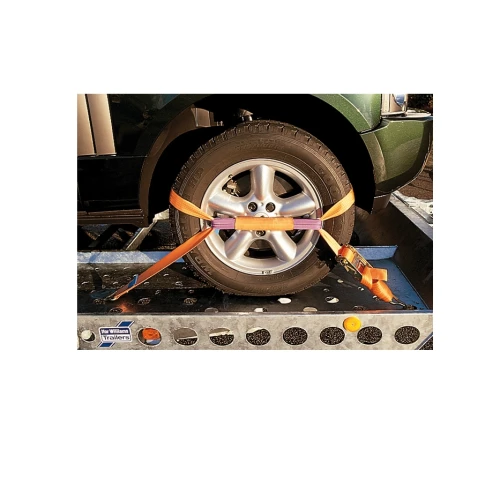Høyden på skjermene integrert i plattingen er kun 10,4 cm. Dette gir god klaring til kjøretøyet du laster på og påmonterte antisklilapper gir trygg avstigning etter påkjøring. Trill frem til de justerbare heavy duty hjulstopperne og sikre lasten, enklere blir det ikke. Stropper kan oppbevares i den innebygde stroppekassen ved siden av reservehjulet foran i planet. Vinsjarmen er sideforskyvbar, - noe som forenkler opptrekk av biler som må vinsjes. Riflet aluprofil over planet gir en trygg planflate til enhver tid. (Vinsj er ekstrautstyr.)