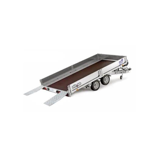 Ifor Williams TB4621-352 med "stowable skids og karmer" : versjon med både komplett karmsett og solide justerbare ramper i integrerte kammer under planet, - som kan tas frem ved behov og plasseres bak. En meget romslig vippeplanhenger med praktisk vippefunksjon; planet tiltes enkelt bakover for effektiv lasting og lossing av små og store objekter. Hengeren har stålforsterkede ytterkanter og slitesterk bunn i kryssfiner og er velegnet til trygg transport av kjøretøy og utstyr, herunder lifter og gravmaskiner. Kombinasjonen av rampe og tiltbart plan gir meget god innlastingsvinkel - denne er derfor populær også til transport av biler og lignende kjøretøy. Hengeren er bygget på 2 aksler og kjører på 12″ hjul som standard. Modellen finnes også med hel bakrampe (se varelisten).