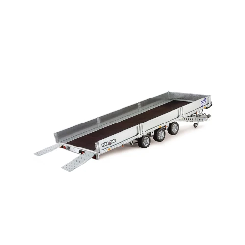 Ifor Williams TB5521-353 med "stowable skids og karmer" : versjon med både komplett karmsett og solide justerbare ramper i integrerte kammer under planet, - som kan tas frem ved behov og plasseres bak. En meget romslig treakslet vippeplanhenger med praktisk vippefunksjon; planet tiltes enkelt bakover for effektiv lasting og lossing av små og store objekter. Hengeren har stålforsterkede ytterkanter og slitesterk bunn i kryssfiner og er velegnet til trygg transport av kjøretøy og utstyr, herunder lifter og gravmaskiner. Kombinasjonen av rampe og tiltbart plan gir meget god innlastingsvinkel - denne er derfor populær også til transport av biler og lignende kjøretøy. Hengeren er bygget på 3 aksler og kjører på 10″ hjul som standard. Modellen finnes også med hel bakrampe (se varelisten).