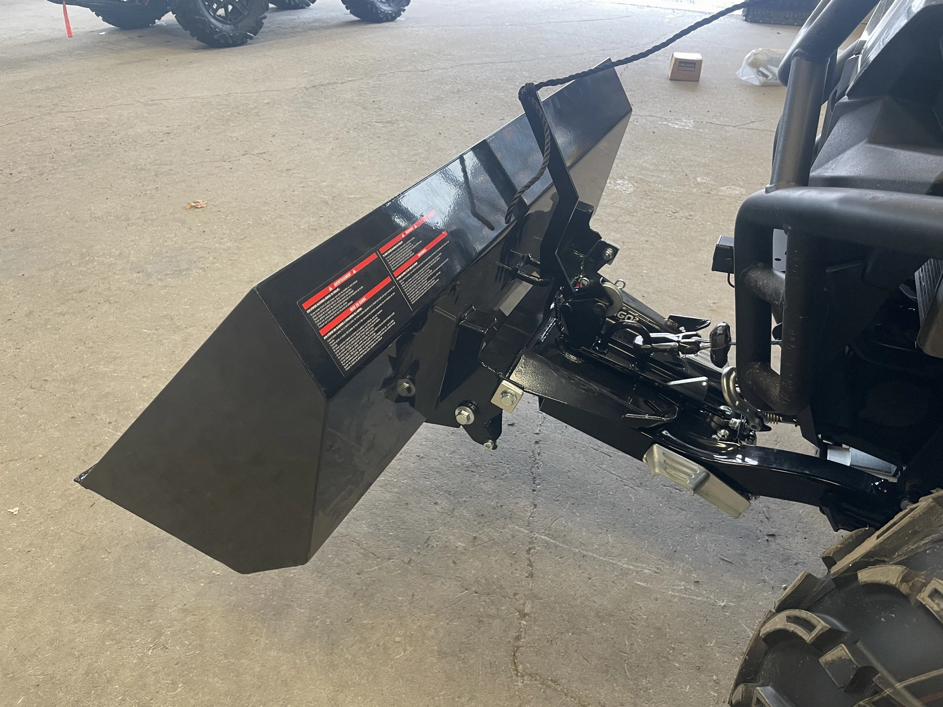 • Vinsj fremme på ATV er obligatorisk; brukes til å løfte skuffen (medfølger ikke)