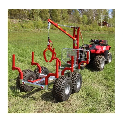 Komplett skogsppakke med vogn, kran, fjenstyrt elvinsj, ett støtteben, tømmersaks och batterikasse.