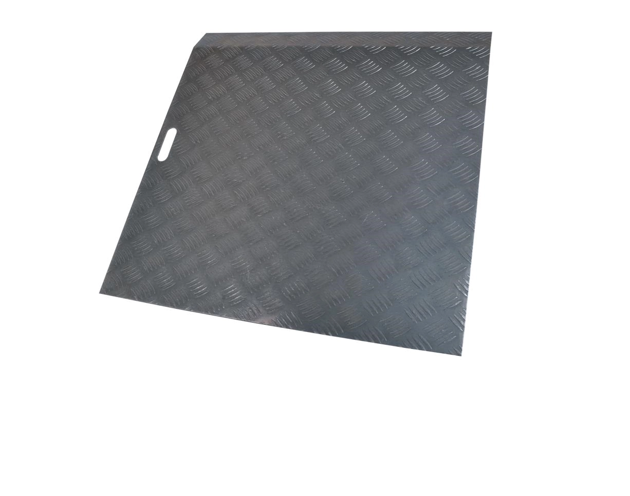800 x 800 mm med anleggsflate. Maks belastning 200 kg.