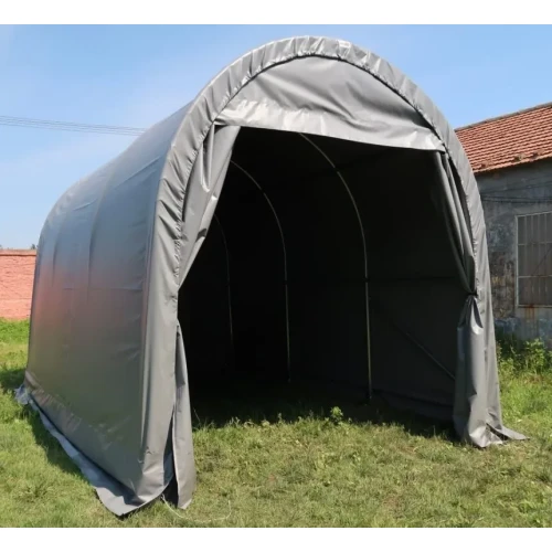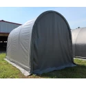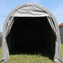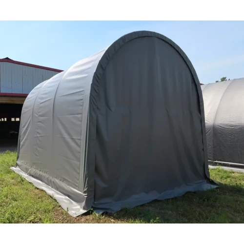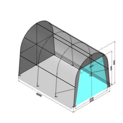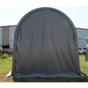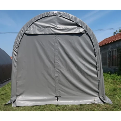 Solid og bruksvennlig plasthall bobil, båt og annet som trenger en lagerplass med litt høyde. Høyde på 4 meter og snøvennlig takform. Lengden er 6 meter og bredde 4 meter. Vi har denne modellen i 6,8 og 10 meter lengde. Lagerteltet har en kjekk dørløsning, hvor det er en stang som dørstykket henger på og kan skyves til side, nesten som «gardin» prinsippet.