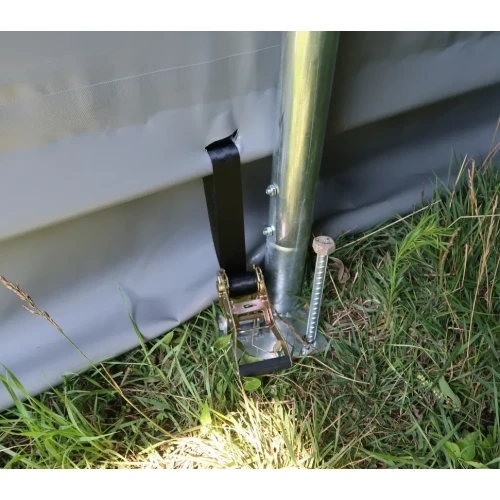 Laget av galvaniserte stålrør 60*1,5 millimeter for stålbuene. Mellom buene er det brukt 40 millimeter rør med tykkelse 1,5 mm. Avstanden mellom stålbuene er 2 meter. Tak og veggduk er laget i PVC. Duken er grå og veier 610 gr. pr. kvadratmeter duk. Pvc duken er UV bestandig og må ikke sammenlignes med PE duker som har en begrenset holdbarhet, gjerne 3-5 år. Dørløsning er enkel å betjene.