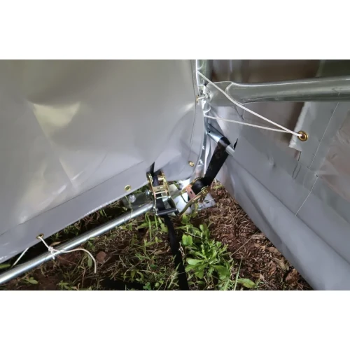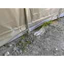 Lagerteltet har en kjekk dørløsning, hvor det er en stang som dørstykket henger på og kan skyves til side, nesten som «gardin» prinsippet. Dørløsning er enkel å betjene. Et triks for å redusere fukt og kondens på lagerhaller er å legge over en tynn hvit lett presenning før du trekker over hovedpresenningen i PVC. Hallen blir da mye tørrere i de årstidene hvor det er stor forskjell på dag og nattetemperaturer.