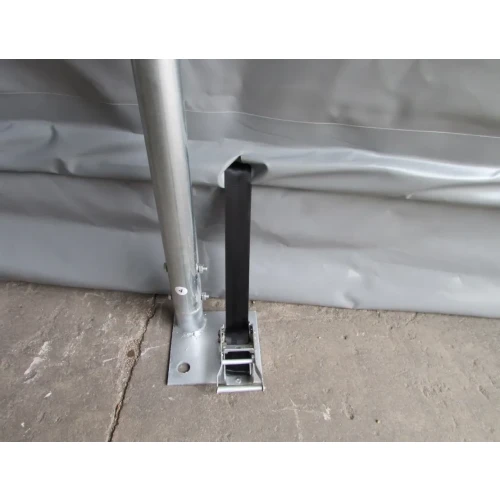 For å lette montering av lagerteltet kan man også legge ut en ringmur av impregnert trematerialer. Da blir underlaget for vegg stolpene rett og når du skal skru fast føttene så kan du bruke franske treskruer og en drill til jobben. Medfølgende jordspyd for forankring av hallen kan da slås ned i grunnen ved at man borrer et hull i trematerialene og slår spydet ned. Treffer man stor stein trekker man spydet opp og prøver et annet sted.
