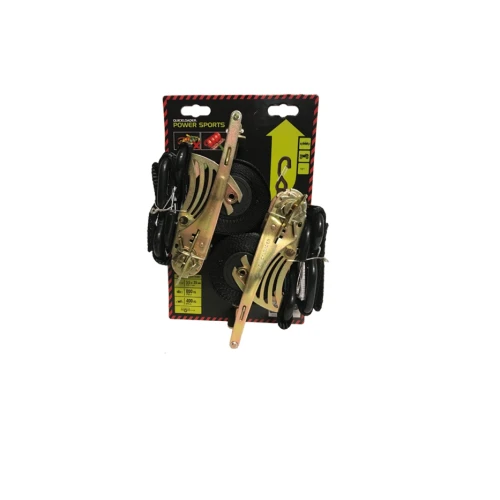 Quickloader 800 kilo HD powersport stropp. J-krok med klippsfeste i begge ender - praktisk ved sikring av ATV, UTV og MC på tilhenger. Gulkromatisert.