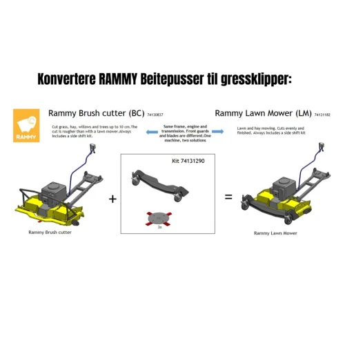 • KIT som lar deg konvertere Rammy beitepusser til gressklipper