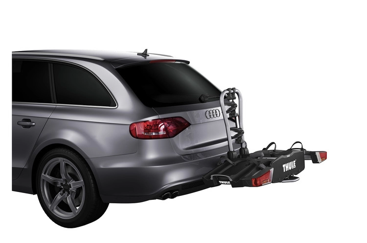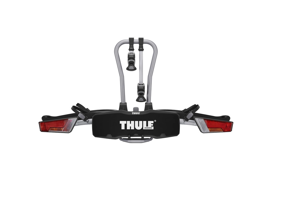 Fullstendig sammenleggbart for enkel montering, håndtering og oppbevaring. Høy lastekapasitet gjør det mulig å transportere elsykler og tunge terrengsykler. Enkel festing av syklene med avtakbare rammeholdere med låsbare Thule AcuTight-momentbegrensningsknotter som «klikker» når de når optimalt moment. Stor avstand mellom hjulholderne gjør det mulig å transportere kraftige sykler med stor akselavstand. Justerbare pumpespenner med ekstra lange hjulstropper gjør det enkelt å feste hjulene (opptil 4.7"), og transport av sykler med ekstra kraftige hjul er mulig. Smart fotpedalvipping for enkel tilgang til bagasjerommet selv når sykler er monter. Enkelt å montere og justere sykkelstativet før strammehåndtaket lukkes, takket være stabiliteten i hengerfestet. Ergonomisk transport av sykkelstativet takket være integrerte bærehåndtak. Ferdigmontert, ikke behov for verktøy. Lås syklene til sykkelstativet og sykkelstativet til hengerfestet (låser følger med)