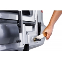 Robust kobling som ikke trenger forhåndsjusteringer for å festes. Myke, beskyttende rammeholdere holder syklene på plass. Kan vippes for enkel tilgang til bagasjerommet. Kan legges flatt sammen for enkel oppbevaring og håndtering.