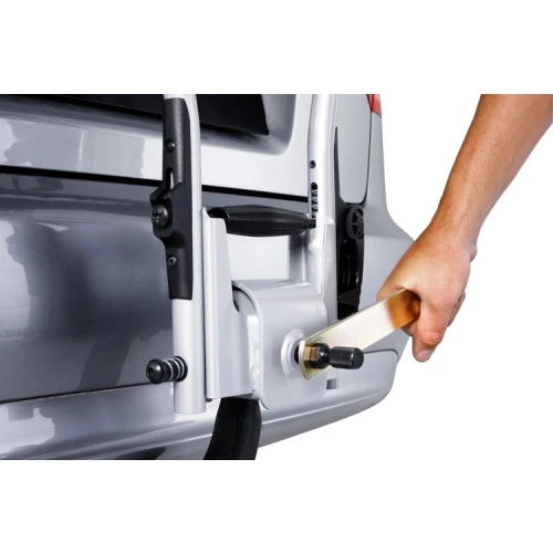 Stativet kan låses til tilhengerfestet og syklene til stativet med Thule Cable Lock 538 (ekstrautstyr). Bruk Thule sykkelrammeadapter 982 for å få plass til sykler med uvanlige rammeformer (f.eks. damesykler, BMX-er, terrengsykler) (ekstrautstyr).