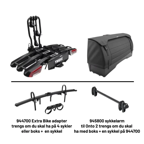 Thule pakke: Thule EasyFold 3 for 3 sykler og Onto2 bagasjeboks for EasyFold 3