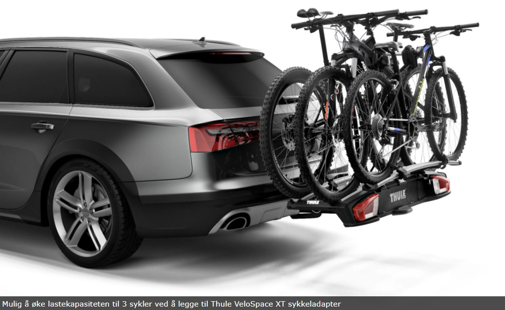 - Mulig å øke lastekapasiteten til 3 sykler ved å legge til Thule VeloSpace XT sykkeladapter