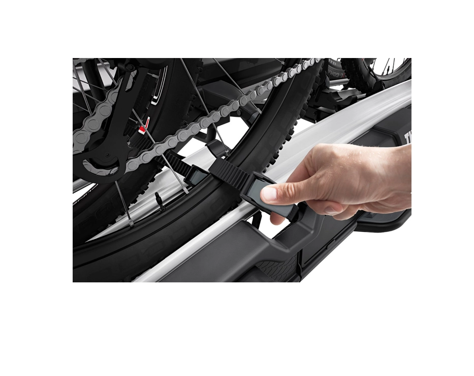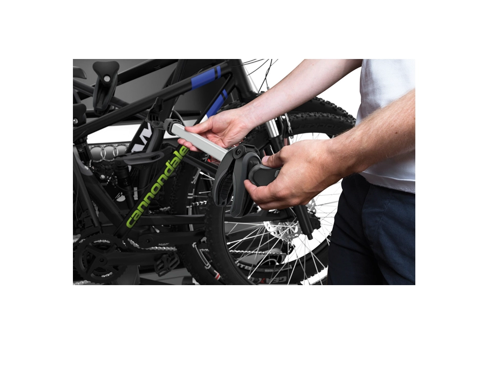 • Enkel festing av syklene med avtakbare rammearmer med Thule AcuTight-momentbegrensningsknotter som «klikker» når de når optimalt moment