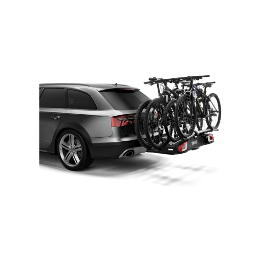 Egenskaper: Enkel å installere, takket være fjærbelastede utløsningsknapper. Største lastekapasitet 15 kg. Låser sykkelen og adapteren til sykkelstativet med Thule One-Key System (låser inkludert)