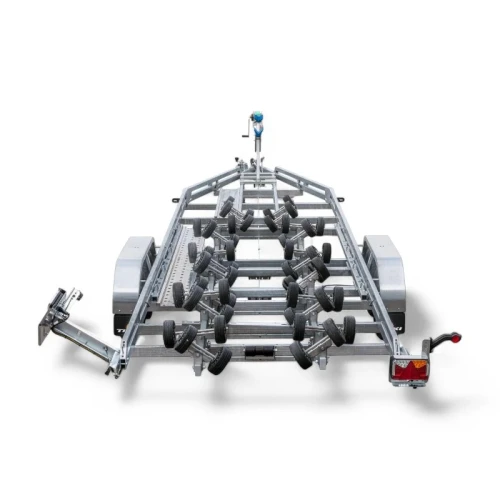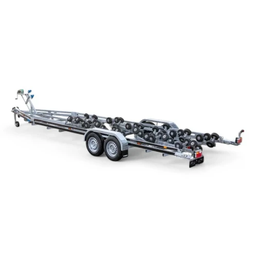 En bremset båthenger for båter opp til 30 fot og nyttelast på 2512 kg. Med brems på hengeren er det tillatt å kjøre i opptil 80km/t på veier som har den fartsgrensen eller høyere. Helsveiset og varmgalvanisert dobbel A-ramme av firkantrør gir en stivere og meget solid henger. Multirullersystemet består av 48 store kjølruller som parvis automatisk justerer seg etter båtens skrog. Passer de aller fleste skrogtyper. Opptrekket blir derfor ekstra skånsomt for båten. Vinsjtårnet kan flyttes i hengerens lengderetning, så man kan balansere båten perfekt på tilhengeren. Den er utstyrt med dobbel myk bauggummi som beskytter skroget godt. En anerkjent kraftig Goliath vinsj følger med. Baklyktene er utvippbare med gassdemper som holder de på plass, så det er ingen behov for å ta de av, og fikle med ledninger. Hengeren er utstyrt med LED lys rundt baut, også baklys er LED. Ledningene er skjult i rammen. Stålskjermer som tåler opptil 100kg, gir lettere tilgang til båten når den står på hengeren. Surrefester til stropper er integrert i hengerens ramme, foran- i midten -og bak på hengeren. 14 tommers hjul gjør den fin å kjøre også i ulendt terreng. 2 gangbruer er standard utstyr. God kvalitet, enkel i bruk og skånsom mot båten.