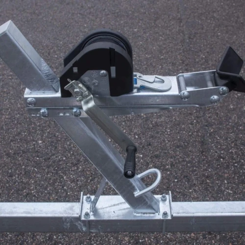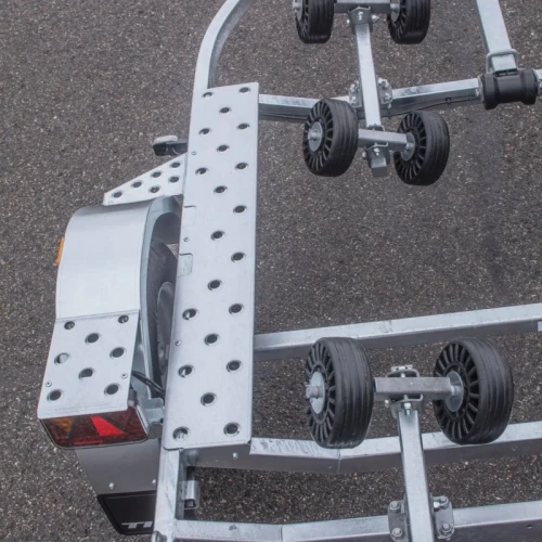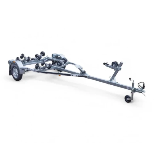 Rammen med forlengede sidebjelker øker stabiliteten og sikkerheten under kjøring. Den justerbare trekkstangen gjør at hengeren kan justeres etter båtens lengde og tyngdepunkt. På vinsjtårnet er det mulig å justere høyden på vinsjen og nesestøtten, samt vinkelen i forhold til bakken. En vinsj med brems sørger for komfortabel og sikker drift. Støttehjulet støttes fra to punkter for tryggere og mer praktisk forflytning av båten uten tauekjøretøy. Vanntette nav sikrer lengre levetid for hjullagrene. Tilhengerrammen er utstyrt med store, sterke surrekroker for å feste båten sikkert. Justerbare sidestøtter og en vippemekanisme styrer båten mot hengeren. Step-on-fendere og step-on-bord i metall gir bedre tilgang til båten på hengeren. Baklyktene er festet til tilhengerens skjermer. Takket være dette kan tilhengeren betjenes uten å flytte lysene.