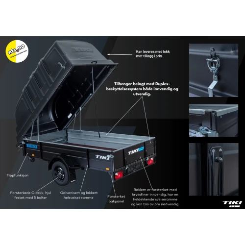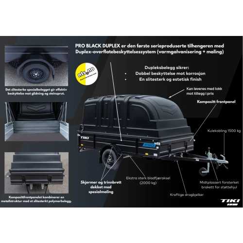 Tikis toppmodell i proffsegmentet; PRO BLACK DUPLEX – en revolusjon i tilhengerverdenen. Romslig modell med planlengde på hele 300 cm.