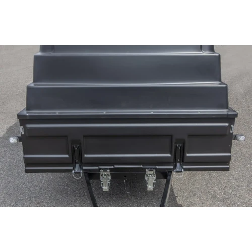 Hengeren er helsveiset, har forsterket ramme og er produsert med stål fra SSAB – verdens ledende produsent av miljøvennlig kvalitetsstål. Et robust valg for deg som krever pålitelighet, bærekraft og ytelse – året rundt. I tillegg har den 40 cm karmhøyde for mer volum, tippfunksjon, forsterkede karmer og forsterket, avtakbar, helsveiset baklem belagt med kryssfiner på innsiden slik at du enkelt kan ta med deg små maskiner som ATV og gressklippere.Den avtakbare forlemmen har frontdeksel av kompositt; Kombinasjonen av stålkarm og deksel i slitesterk polymer beskytter effektivt mot steinsprut og gjør vedlikehold enkelt. Innvendige og utvendige festepunkter gir rom for optimal lastsikring.