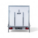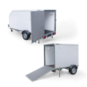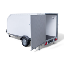 Bakdøren kan åpnes på to måter: enten sidehengslet eller nedover som oppkjøringsrampe. Dette gjør hengeren svært fleksibel i bruk – du kan enkelt kjøre inn utstyr på rampe, eller åpne døren til siden når du skal laste med for eksempel truck. Døren har sklisikker overflate, gassdempere for kontrollert åpning/lukking og en festemekanisme som holder døren trygt i åpen stilling, selv når det er vind.