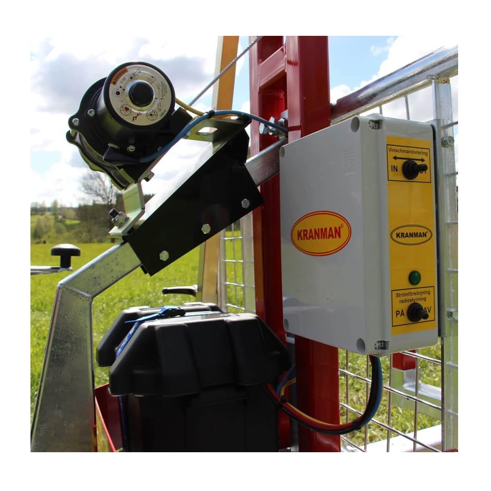 Komplett skogsppakke med vogn, kran, fjenstyrt elvinsj, ett støtteben, tømmersaks och batterikasse.