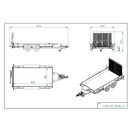 Ekstremt solid bygget, presis konstruksjon. Totalvekt: 3500 kilo, Nyttelast på 2656 kg. Romslig planmål på 383 x 180 cm. TP385-DLB er en ny maskinhenger utviklet ved hjelp av fagpersoner med inngående kunnskap om proffhengere til maskintransport og entreprenørvirksomhet. Dette er en sterk og allsidig tilhenger til en attraktiv pris. Alt er laserskåret for å gi tilhengeren den største nøyaktighet. Store og sterke hjul: Lavprofil 185/70R13 C (forsterket!), M+S; Helårsgodkjente.