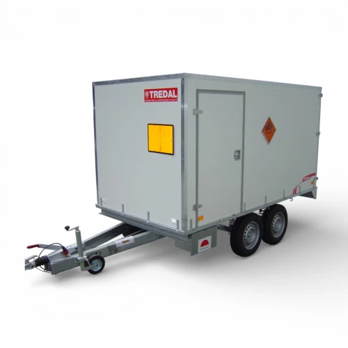 TREDAL 12-BBKS skaphenger i versjon med ADR godkjenning og inngangsdør på valgfri side. En praktisk mellomstor toakslet skaphenger med god plass og stabile kjøreegenskaper. Tilpasset med ADR pakke; godkjent for transport av utstyr som krever ADR godkjenning.