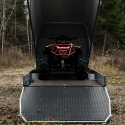 Rampeløsningen som er utviklet for denne hengeren, er belagt med slitesterk riflet plast som gir godt grep og sikkerhet, selv under glatte forhold. Rampen fungerer som en praktisk på- og avkjøringsvei og krever ikke ekstrautstyr ved lasting og lossing.
