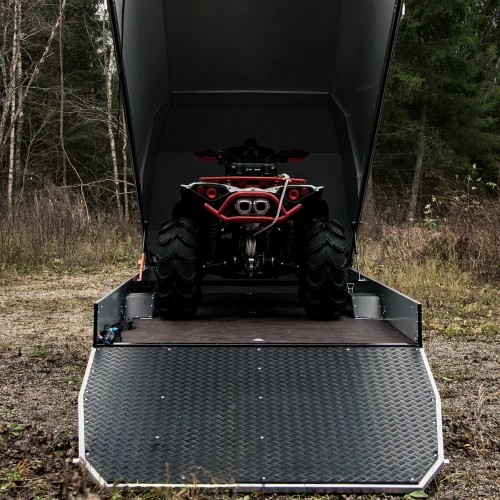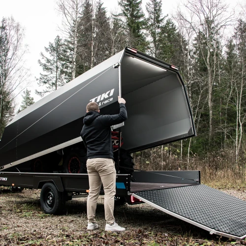 Vår tøffeste lokkhenger fra Tiki! Det ideelle valget for deg som trenger pålitelig og holdbar tilhenger til motorsportutstyret ditt – enten det gjelder snøscootere, ATV-er eller annet utstyr som bør skjermes under transport. Planlengde på 430 og panlengde på 190 cm med 14 cm innfelte skjermer gir god plass til snøscooter og andre maskiner.